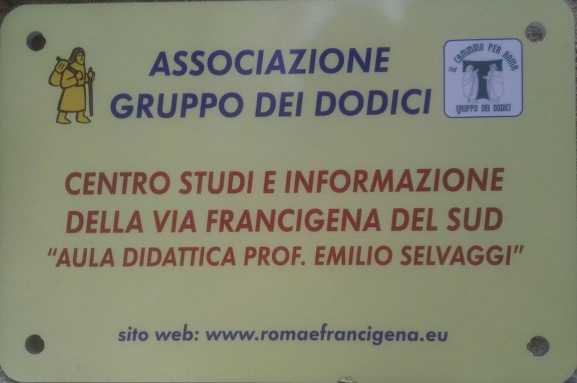 E' stata intitolata al compianto professore Emilio Selvaggi, scomparso di recente, l'aula didattica del Centro che il Gruppo dei Dodici ha aperto per lo sviluppo della via Francigena lungo l’Appia, un cammino ormai giunto al suo decimo anno di frequentazione da parte di numerosi viandanti. Il Centro, situato nel mezzo del percorso francigeno, è destinato a raccogliere un largo interesse ed è aperto a tutti quelli che operano per lo sviluppo della Via. Si trova a Fondi, al civico 10 di via Cesare Augusto. Emilio Selvaggi ha fatto parte del Gruppo dei Dodici fin dall'inizio, da sempre convinto sostenitore del recupero delle tradizioni popolari: significativa, dunque, la scelta dell'intitolazione dell'aula alla sua memoria.
