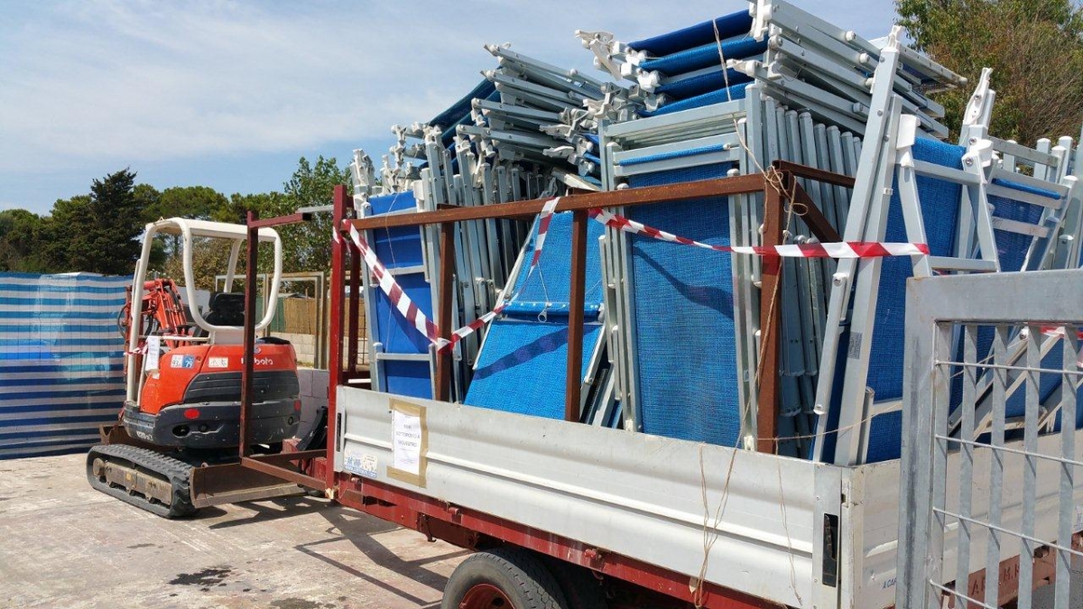 I responsabili degli abusi si erano avvalsi anche dell’ausilio di mezzi meccanici, quali un escavatore munito di carrello su ruote privo di copertura assicurativa, al fine di portare agilmente le attrezzature balneari sull’arenile.
