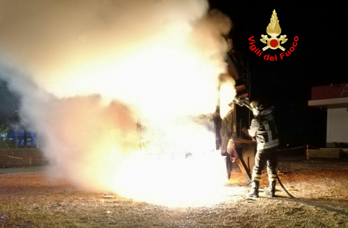 Personale Vigili del Fuoco della sede di Terracina è intervenuto nella notte appena trascorsa, ore 03.15 circa, nel cCmune di Terracina, via Pontina km 106+500, per delle segnalazioni giunte al 115 di un incendio. Giunti tempestivamente in posto, gli operatori VF prendevano atto che, all'interno di un piazzale di una attività commerciale, un automezzo adibito a piattaforma aerea era avvolto dalle fiamme. Subito iniziavano le operazioni di spegnimento da parte del personale dei Vigili del Fuoco. Successivamente l'ufficiale di P.G. dei Vigili del Fuoco effettuava un accurato controllo della scena per cercare di risalire alle cause che, a causa del rogo generalizzato, non si sono potute accertare. Non risultano persone coinvolte.