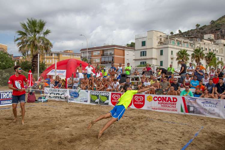 Andavano oggi in scena gli ottavi ed i quarti di finale dei rispettivi tabelloni maschile e femminile e come da copione non è mancato lo spettacolo condito da numerose sorprese. In campo maschile Beccaccioli-Benussi, dopo aver concluso un’infinita partita giocata su due giornate, hanno avuto accesso dapprima agli ottavi con il tie break vinto su Marighella-Meliconi, poi dopo un’altra maratona contro Simone Burini e Francesco Pesaresi conclusasi al terzo set 3-6 6-1 6-0 hanno raggiunto i quarti di finale dove ad aspettarli c’erano Diego Bollettinari e Marco Faccini che a loro volta avevano facilmente battuto la coppia locale Gianmarco Scarica e Simone Perroni con il punteggio di 6-2 6-4. La gara come da copione è stata giocata su ritmi altissimi ma alla fine i due romani hanno avuto la meglio per 6-2 6-4; per loro appuntamento a domani mattina per sfidare i campioni in carica Nikita Burmakin e Tommaso Giovannini nella semifinale. La coppia misto italo-russa infatti ha eliminato dapprima agli ottavi Fabrizio Avantaggiato e Luca Cramarossa con un perentorio 6-3 6-4 e poi, nello scontro con i francesi freschi campioni in carica del campionato europeo, Mathieu Guegano e Theo Irigaray hanno letteralmente passeggiato vincendo in due set 6-3 6-1. Nella parte alta del tabellone, ricca di beachers di altissimo livello alla fine le due coppie che hanno raggiunto la semifinale sono state Alessandro Calbucci in coppia con Marco Garavini e a sorpresa Niccolò Strano accoppiato per l’occasione con Dennis Valmori. Infatti il duo formato dall’idolo bolognese e dalla furia cesenate hanno sorprendentemente battuto i quotatissimi Luca Carli e Michele Cappelletti coppia che in passato è stata per un lungo periodo numero 1 del ranking beachtennistico mondiale. La partita è stata a tratti spettacolare e ricca di colpi di scena ma alla fine si è conclusa per 6-3 6-4. Come detto in precedenza in semifinale troviamo anche la coppia Calbucci Garavini che in prima battuta agli ottavi ha eliminato, dopo una gara lunga e combattuta, lo zio Alessio Chiodioni accoppiato con uno dei migliori giovani emergenti del panorama beachtennistico Mattia Spoto classe 99’,con il punteggio di 1-6 6-1 6-4. Nei quarti i due trovavano Andrea Banci e Marco Mastrantoni sorprendentemente arrivati a tale traguardo dopo aver battuto il caraibico giocatore di Aruba Aksel Samardzic accoppiato con il Brasiliano Vinicius Font, per 7-6 6-3. La gara sulla carta agevole per la testa di serie numero 1 del tabellone si è conclusa con qualche patema d’animo a favore dei più quotati beachers con il punteggio di 7-6 6-2.