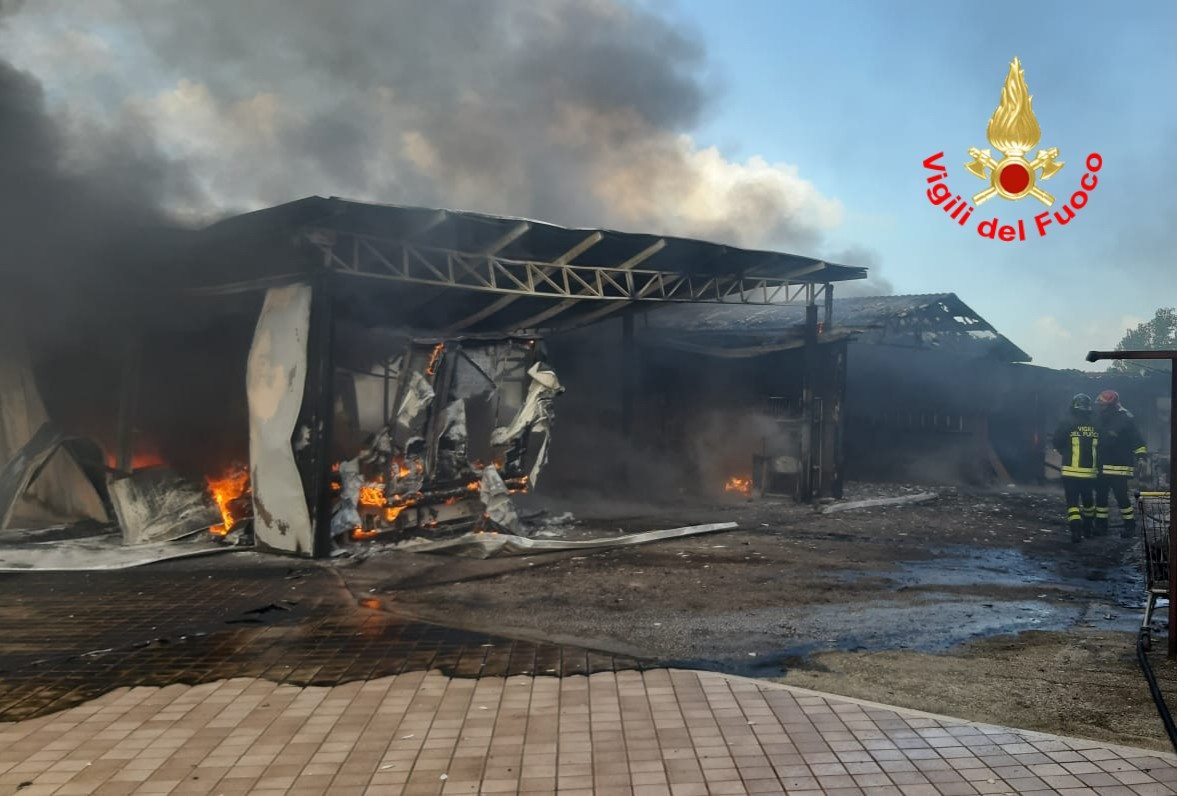 I vigili del fuoco locali intervengono per l'incendio di un capannone a Sabaudia