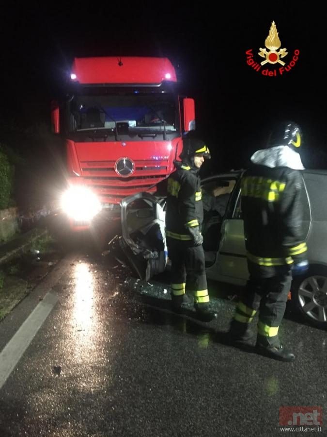 Sul posto la squadra territoriale VF prendeva atto che un mezzo pesante ed una vettura erano entrate in collisione per cause in fase di accertamento da parte delle ff.oo.