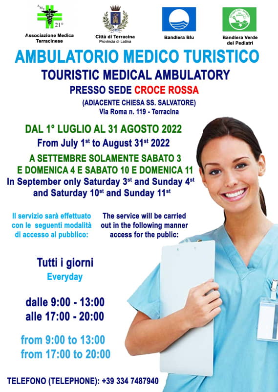 Poter garantire questo tipo di ulteriore assistenza ai nostri ospiti, è motivo di soddisfazione per noi e per gli operatori del turismo di Terracina. Anche io desidero ringraziare l’Associazione Medica Terracinese, componente essenziale di questo servizio.