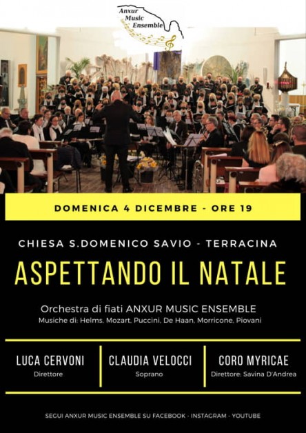 L’Orchestra di Fiati Anxur Music Ensemble torna a esibirsi a Terracina con il Concerto “Aspettando il Natale” domenica 4 dicembre alle ore 19 nella chiesa di San Domenico Savio. Un nuovo imperdibile appuntamento per gli amanti della Musica che, in questa occasione, saranno proiettati in un viaggio di melodie emozionante e variegato.