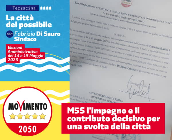 Sono stati quasi in 300 a sottoscrivere con la propria firma la presentazione della lista del Movimento 5 Stelle per le prossime amministrative a Terracina. A tutti loro va il nostro ringraziamento per aver partecipato in maniera convinta e trasparente a quello che è sì un adempimento di legge, ma che consideriamo soprattutto un bell’esercizio di democrazia. Ora inizia per noi una fase importante di comunicazione e coinvolgimento per portare avanti in consiglio comunale quei temi che da sempre guidano la nostra attività politica.
