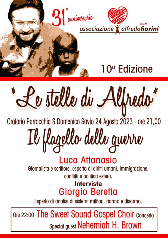 Per l’evento del 24 agosto 2023, avendo particolarmente a cuore sia le problematiche connesse ai flussi migratori, sia quelle drammatiche geopolitiche che determinano situazioni di guerra, ospiteremo quale autorevole voce per i nostri incontri Giorgio Beretta, autore del libro “Il paese delle armi” esperto di analisi di sistemi militari, e di riarmo/disarmo, che sarà intervistato da Luca Attanasio, giornalista e scrittore esperto di diritti umani, immigrazione, conflitti e politica estera, che collabora con Repubblica.it, Vatican Insider, Limes, Famiglia Cristiana, Radio Vaticana, Jesus.