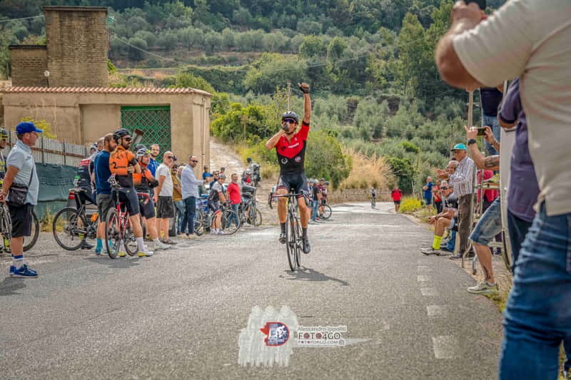 Il forte accordo dei quattro li portava sino all’inizio dell’ultimo giro dei 15 previsti, ma un ritorno imponente del gruppo, pilotato da Luca Madaluni, atleta di casa, non gli permetteva di iniziare lo strappo finale verso Campo Soriano. Strappo di circa 3 km che rimaneva indigesto ai più del gruppo ma non allo stesso Luca Madaluni Asd Terracina Cycling, che si presentava solo sotto il traguardo, precedendo Bruno Di Tolve Asd Anzio Bike e Giuseppe Soldi Asd Veloteam Latina.