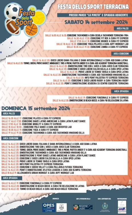 Mancano pochi giorni alla seconda edizione della “Festa dello Sport” che sarà realizzata a Terracina sabato 14 e domenica 15 settembre 2024, grazie al format ideato da Opes Latina. L’evento, che da anni si realizza nel capoluogo pontino, coinvolge associazioni e sportivi creando una vera palestra a cielo aperto.