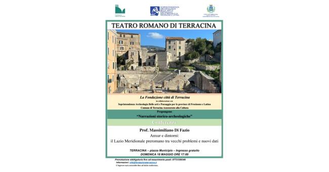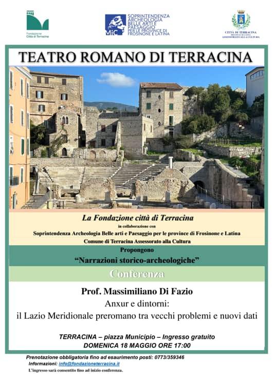 L’intervento del prof. Di Fazio, coadiuvato da una proiezione di immagini su ledwall, si concentrerà sulle vicende storiche e archeologiche del Lazio meridionale costiero tra l’epoca preromana e la romanizzazione. In particolare si metteranno in luce la storia e il ruolo rilevante di Terracina e Fondi, i due centri che negli ultimi anni hanno restituito le novità più significative.