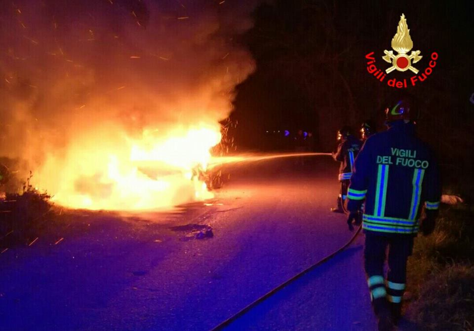 La squadra 3A del distaccamento *VVF* di Terracina è intervenuta nel tardo pomeriggio di oggi (ieri, ndr) nel Comune di Terracina, in località Borgo Hermada (via Strada Circondariale), per la segnalazione giunta al 115 di un incendio auto. Giunto immediatamente sul posto, il personale VF, prendeva atto che un'auto, modello, Mazda CX-5, era completamente avvolta dalle fiamme principalmente nella parte anteriore. Subito iniziavano le operazioni di spegnimento. Successivamente, l'ufficiale di P.G. dei Vigili del Fuoco, constatava, in anche base alle testimonianze, che la natura dell'incendio sia, presumibilmente, da attribuire a cause accidentali, considerando inoltre che la macchina era in movimento. Non si registrano persone coinvolte.
