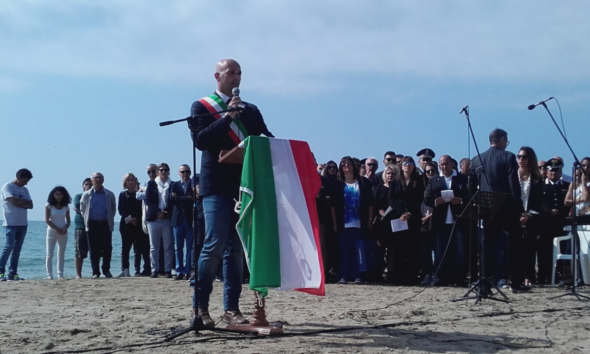 La città di Terracina ha tributato un saluto intenso al capitano Gabriele Orlandi, il pilota dell'Aeronautica militare morto tragicamente dopo lo schianto in mare a bordo dell'Eurofighter durante l'Air Show di domenica scorsa. Questa mattina sulla spiaggia, in direzione di via Campania, si è svolta la commemorazione cittadina organizzata dal Comune, alla presenza delle massime autorità civili e militari, dei colleghi del capitano, dei cittadini e di tanti bambini e ragazzi. Tutti lì a salutare Gabriele, diventato parte della comunità terracinese come ha più volte sottolineato il sindaco Nicola Proccacini. "Questa è una tragedia collettiva, e anche il ricordo del capitano Orlandi dovrà essere collettivo" ha detto Procaccini annunciando la prossima intitolazione di un luogo della città alla memoria del pilota. "Continuate ad amare gli aerei" ha detto rivolgendosi ai bambini e poi ha raccontato di aver parlato con la mamma durante i funerali di Stato a Cesena. "Mi ha detto che non conosceva Terracina e che lei e suo marito avrebbero voluto trascorrere qualche giorno in città. Poi ha aggiunto che torneranno, e io mi sono sentito la coscienza più leggera". E ancora: "Gabriele Orlandi non è morto divertendosi, ma raccontandoci la storia di quegli uomini e quelle donne che sono pronti a difenderci in caso di guerra". Ci sono stati alcuni momenti religiosi con don Fabrizio Cavone, parroco della chiesa di San Domenico Savio, la recita di alcune preghiere per gli aviatori, l'esecuzione del Silenzio. C'è stato il lancio della corona in mare a bordo di una pattino e l'inno nazionale intano dai bambini delle scuole. E' intervenuto anche il colonnello dell'Aeronautica Luciano Ippoliti, comandante di Gabriele Orlandi, che ha ringraziato la città per l'affetto che sta dimostrando e che li aiuta a superare questo tragico momento. La commemorazione, alla quale ha partecipato tanta gente, si è conclusa con il lancio in aria di decine di palloncini tricolori. Intanto da aria è comparso anche un murales in ricordo del capitano, opera dell'artista locale Robof che ha immaginato un aereo proteso verso il cielo.